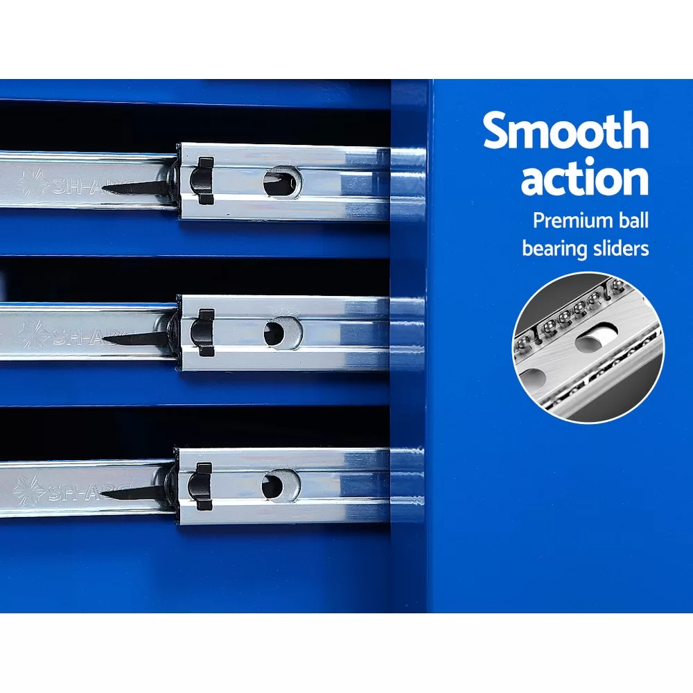 This robust, multi-drawer Giantz Tool Trolley is an essential for any workshop. Crafted from durable steel, it features smooth ball-bearing slides for easy access and a secure lock system for safety. Its spacious design includes varying drawer sizes to accommodate tools of all shapes, complete with non-slip liners. The chest is also mounted on omni-directional castors with locakble front wheels, ensuring a smooth maneuverability and stable positioning. Sleek and functional, it’s perfect for organizing and protecting your valuable tools.